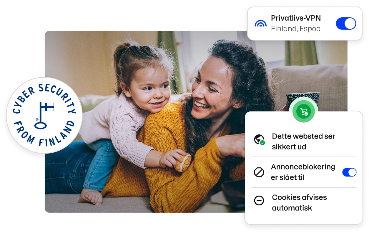 Internetsikkerhed henviser til, hvordan du og dine enheder er beskyttet på internettet. At sikre sig mod nutidens avancerede onlinetrusler uden ordentlig internetbeskyttelse er næsten umuligt. Derfor har du brug for F‑Secure Total som din omfattende internetsikkerhedspakke. For at gardere din onlinesikkerhed skal du sørge for at bruge alle avancerede sikkerhedsfunktioner, inklusive antivirussoftware, malwarebeskyttelse, privat browsing, adgangskodeadministration og dark web-overvågning.